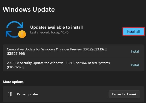 Lorsque cela est fait, ouvrez vos paramètres Windows. Dans leMise à jour Windowsrubrique, cliquez surVérifier les mises à jouret procédez au téléchargement de la dernière mise à jour avant de redémarrer votre PC. Les mises à jour Windows installeront des pilotes obsolètes, ce qui peut aider à corriger l'erreur OpenGL que vous obtenez.