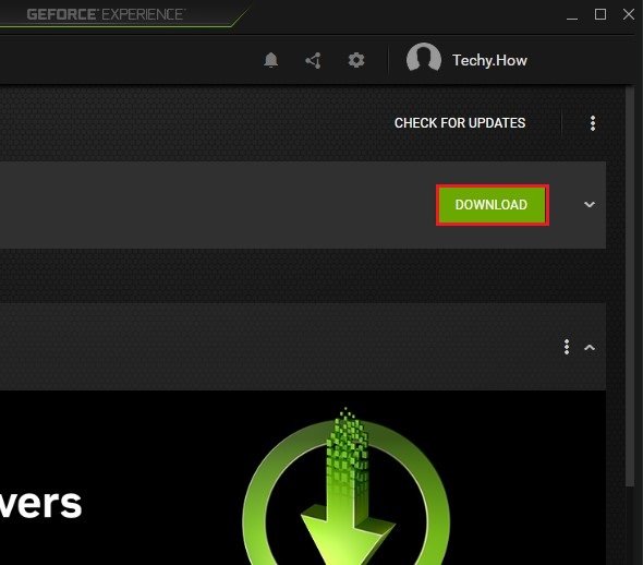 Si vous utilisez une carte graphique NVIDIA ou AMD, je suggère d'utiliser l'application GeForce Experience pour les utilisateurs de cartes graphiques NVIDIA et le logiciel AMD Radeon pour les utilisateurs AMD. Dans lePilotesonglet, cliquez surTélécharger. Cela prendra quelques minutes pour télécharger et installer automatiquement le dernier pilote graphique sur votre système. Après avoir installé le pilote, essayez de relancer Minecraft, car cela corrigera l'erreur OpenGL pour la plupart des utilisateurs.