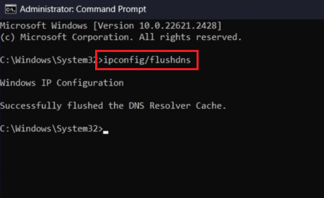 ipconfig /flushdnset frappéEnter.Un vidage réussi affichera un message confirmant que le cache DNS a été vidé.