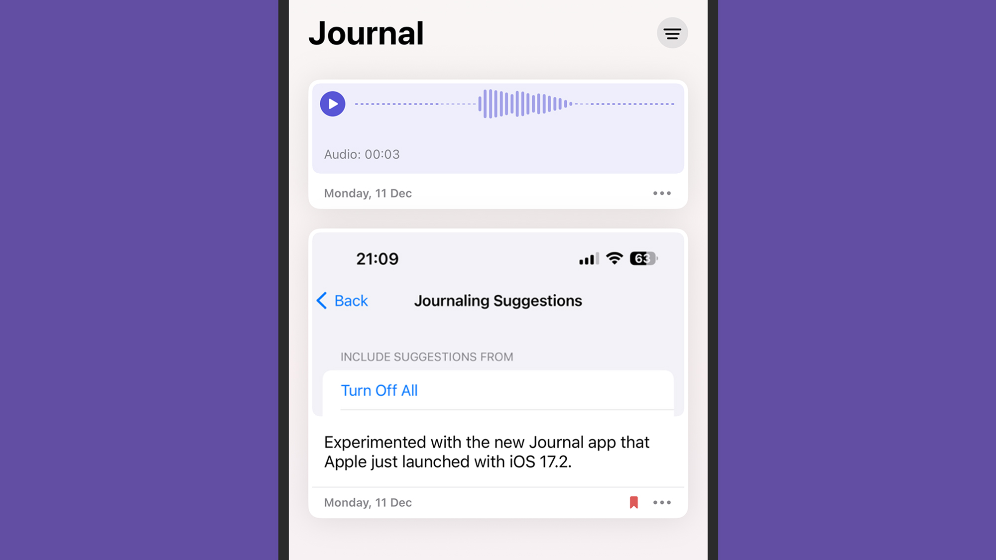 Journal est désormais déployé avec iOS 17.2, donc si vous n'avez pas encore mis à jour votre iPhone avec la dernière version du logiciel, vous devrez d'abord le faire. Le Journal apparaîtra comme une nouvelle application sur votre écran d'accueil et dans votre bibliothèque.