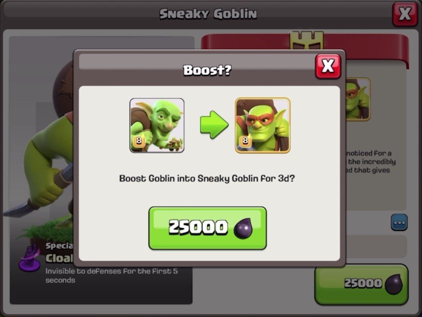 Après avoir choisi de booster une de vos troupes, celle-ci sera activée pendant 3 jours, pendant lesquels vous pourrez entraîner vos troupes comme d'habitude, et elle se transformera en super troupe. Vous ne pouvez également renforcer qu’une seule troupe à la fois. Lorsque vous choisissez de renforcer l'une de vos troupes, toutes les autres troupes seront grisées, vous empêchant d'entraîner d'autres troupes pendant ces trois jours.