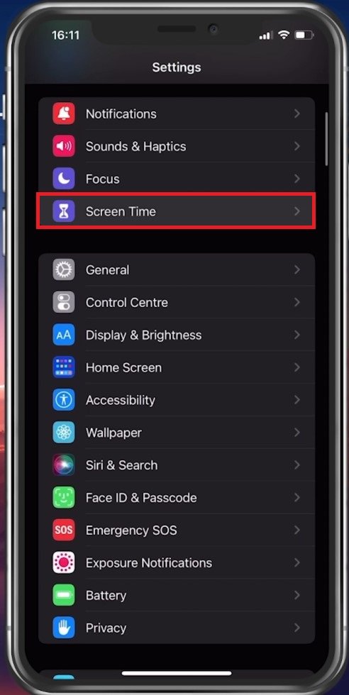 Pour réinitialiser le code d'accès au temps d'écran sur votre appareil, ouvrez les paramètres de votre iPhone. À partir de là, faites défiler vers le bas et appuyez surTemps d'écran.