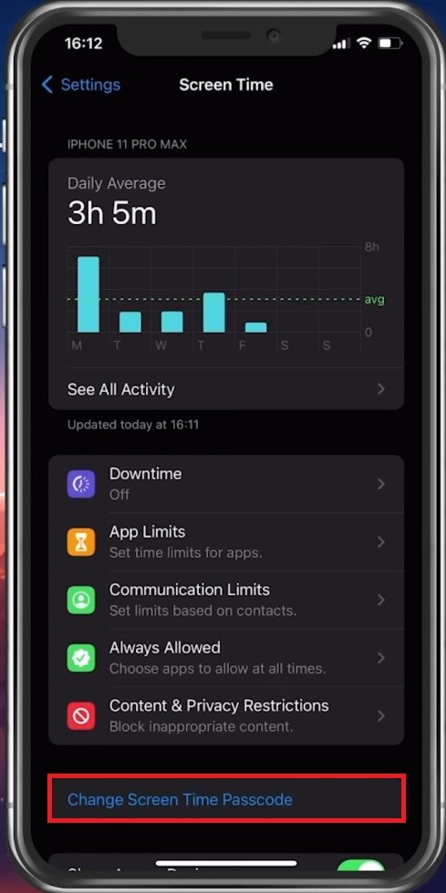 Temps d'écran > Modifier le code d'accès au temps d'écran