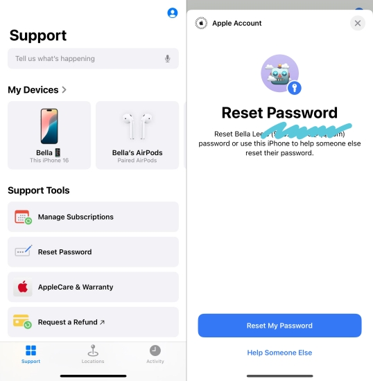 Option 4. Réinitialiser le mot de passe de l'identifiant Apple via l'application d'assistance Apple