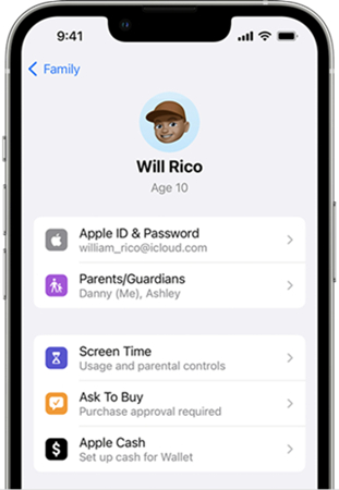Étape 2.Recherchez le compte Apple de votre enfant et appuyez dessus.
