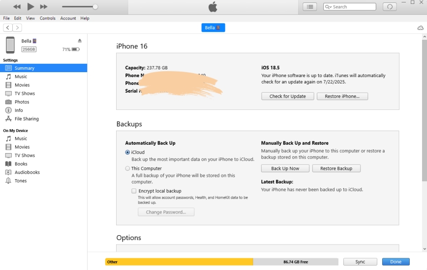 Si vous avez sauvegardé les données de votre iPhone, y compris WhatsApp, sur votre ordinateur via iTunes avant la suppression du message. Vous pouvez également récupérer les messages WhatsApp supprimés par l'expéditeur via iTunes.