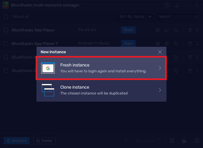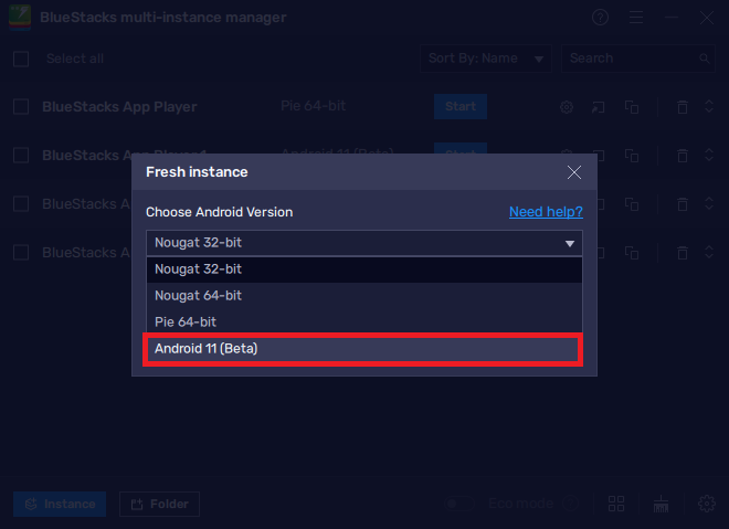 Cela devrait prendre une seconde et vous pouvez suivre l’assistant d’installation pour installer l’application sur votre système. Une fois l'installation terminée,Bluestacksdevrait s’ouvrir automatiquement. Ensuite, avant de télécharger des applications depuis le Play Store, vous devez créer une nouvelle instance BlueStacks, qui exécute Android 11.