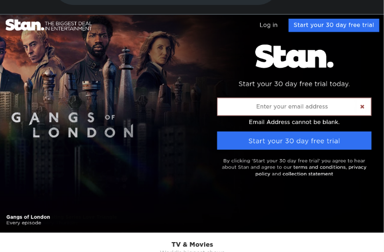 Stan est une plateforme de streaming leader qui offre l'accès à de nombreuses émissions de télévision, films, séries, etc. Les services donnent un accès illimité pour regarder les contenus de diverses maisons de production. Ces nouveaux utilisateurs peuvent profiter de son essai gratuit de 30 jours sans aucune publicité pour tester ses fonctionnalités. Il est possible de diffuser le contenu de Stan sur les écrans de télévision plus grands de votre Apple TV ou de votre smart TV compatible AirPlay via AirPlay.