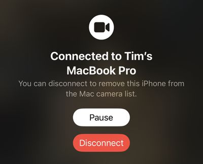 Vous pouvez suspendre la caméra de continuité à tout moment en utilisant lePausesur l’écran de votre iPhone. Lorsque vous avez terminé, appuyez simplement sur le bouton rougeDéconnectersur l’écran de votre iPhone.