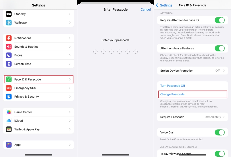 Étape 2.Entrez votre mot de passe et appuyez surChanger le code d'accès.