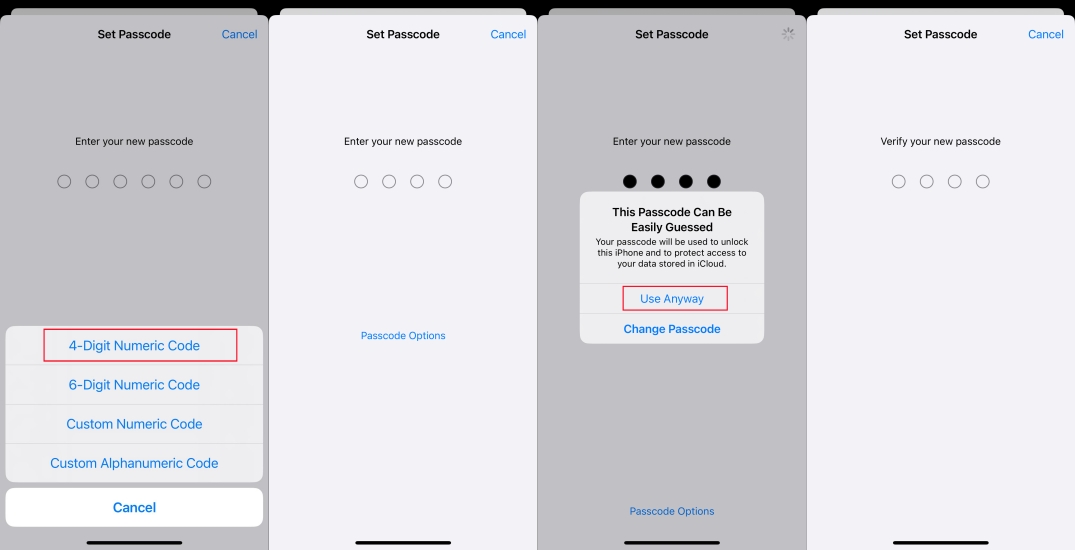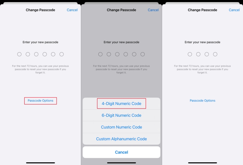 Étape 4.SélectionnerCode numérique à 4 chiffreset entrez votre nouveau mot de passe.