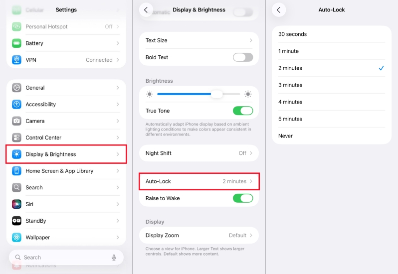 Étape 2.TrouverVerrouillage automatiqueet réglez une minuterie plus longue.