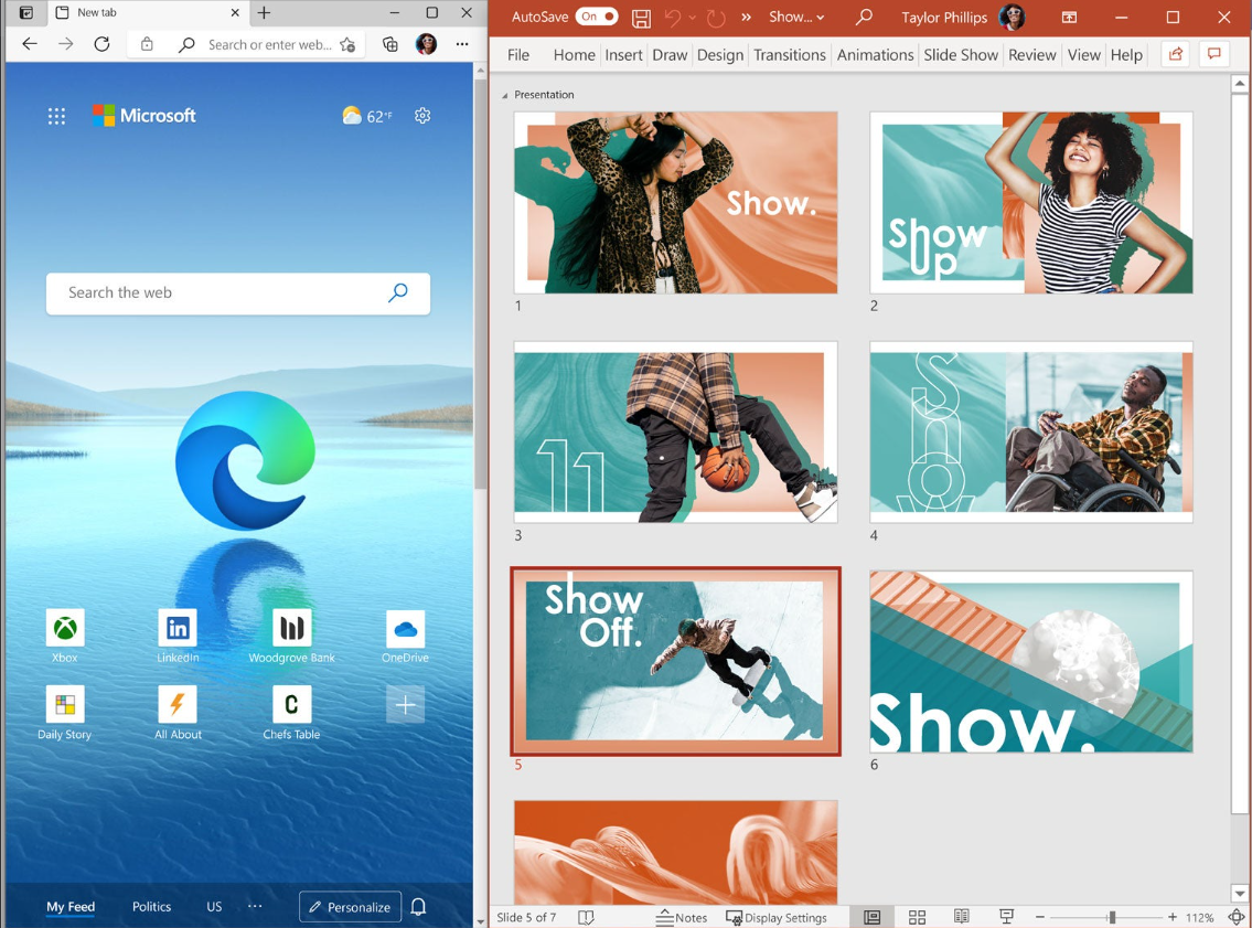 Snap Layouts, une grande nouveauté de Windows 11, vous aide à mieux organiser vos fenêtres ouvertes lorsque vous faites beaucoup de choses à la fois. Et lorsque vous connectez un ordinateur portable ou une tablette à un écran plus grand, Snap Groups peut remettre toutes vos fenêtres là où elles étaient auparavant, ce qui facilite la reprise.