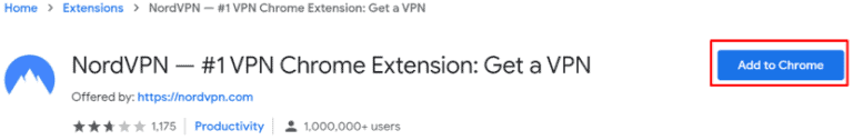 Étape 5 :La page NordVPN Chrome Extension se chargera dans le Chrome Web Store. Cliquez sur le "Ajouter à Chrome" bouton.