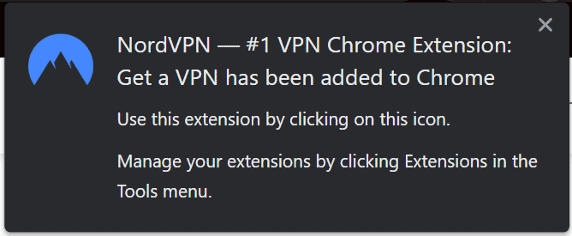 Étape 7 :Vous recevrez une notification indiquant que l'extension NordVPN Chrome a été ajoutée à votre navigateur.