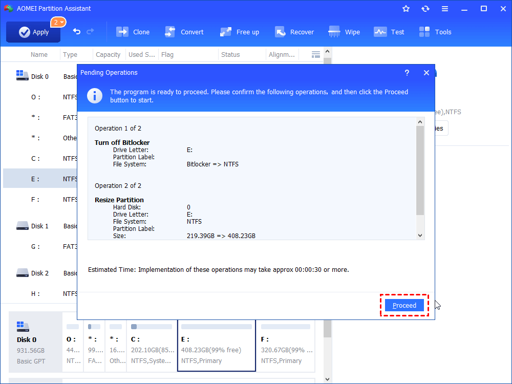 Une fois l'opération terminée, la partition BitLocker sera étendue. Si vous effectuez une mise à niveau vers l'édition Professionnelle, vous pouvez également cloner le lecteur crypté à des fins de sauvegarde. Et vous pouvez directement activer/désactiver ou désactiver BitLocker dans Windows 11 en exécutant la fonctionnalité BitLocker fournie par le logiciel multifonctionnel.