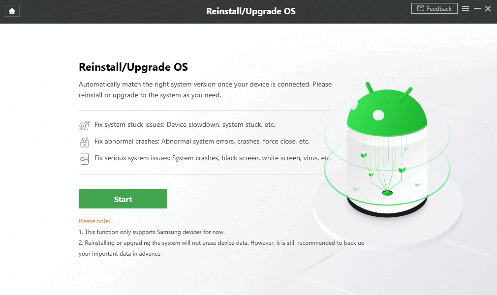 Étape 1.Obtenez DroidKit installé et lancé > ChoisirRéinstallation du systèmemode.
