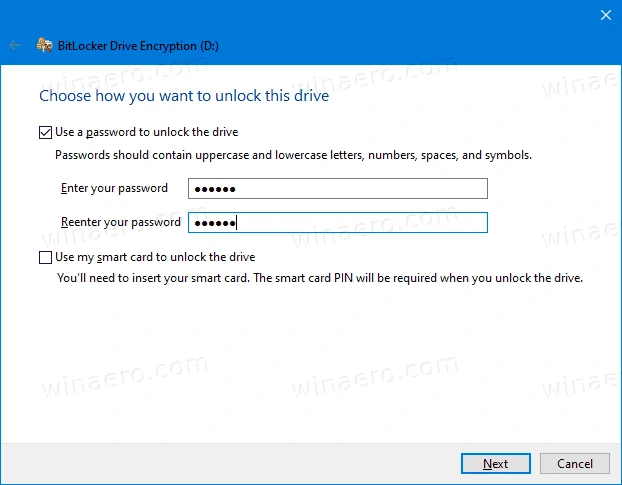Étape 4 : lorsque vous ouvrez l'utilitaire BitLocker, il vous demandera comment vous souhaitez déverrouiller le lecteur. Si vous souhaitez ajouter un mot au lecteur, cliquez sur Utiliser un mot de passe et définissez un nouveau mot de passe pour celui-ci.