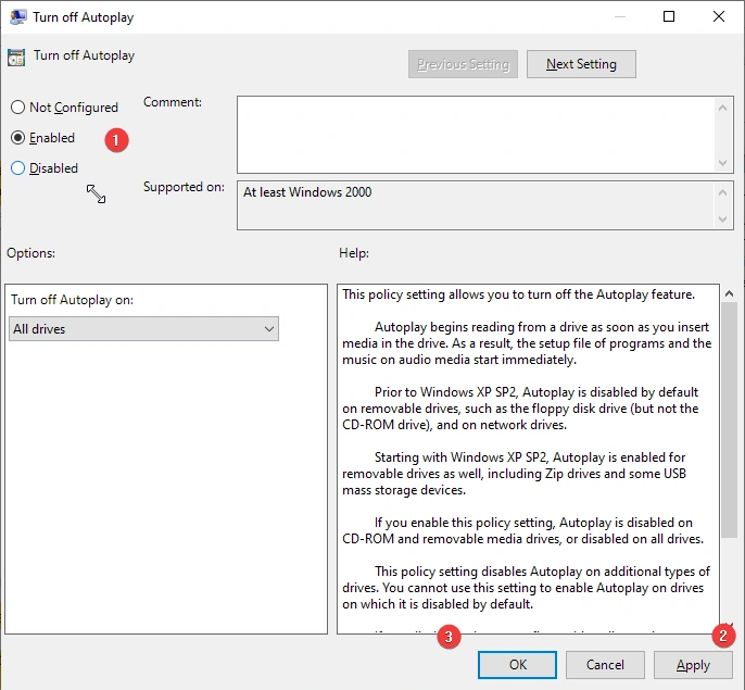 Windows propose une fonctionnalité pratique appelée Autorun pour les clés USB. Cette fonctionnalité exécute instantanément une action prédéterminée, comme lancer l'explorateur pour ouvrir des fichiers ou exécuter des fichiers multimédias. Vous devez désactiver l'exécution automatique.