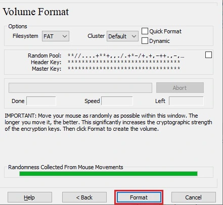 Gardez à l'esprit que l'utilisation de VeraCrypt nécessite le formatage du lecteur pour mettre en œuvre le cryptage.