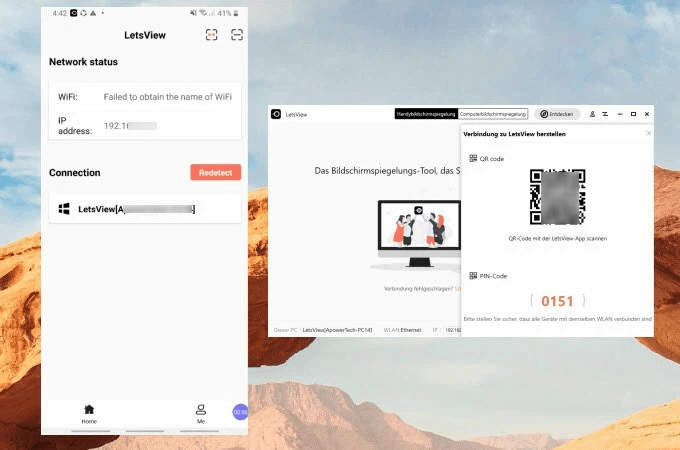 Outil LetsView sur un écran PC, Mac ou TV.