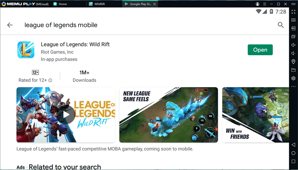 Google Play Store intégré pour trouver Wild Rift.