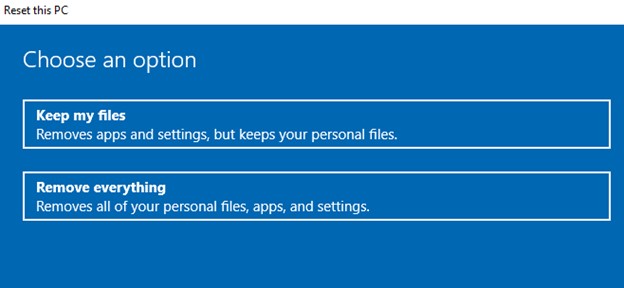 ·Supprimez simplement mes fichiers– cette option est idéale pour un nouveau départ lorsque vous comptez continuer à utiliser le PC. C'est plus rapide que la première option et pratique si vous n'avez pas assez de temps pour exécuter la première option de réinitialisation.