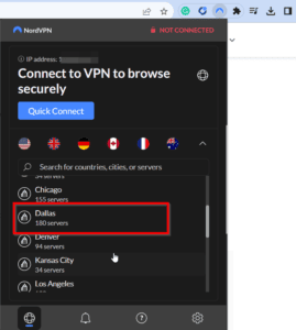 - Keress rá "Dallas.” Ez az egyetlen texasi szerverhely a NordVPN-n.