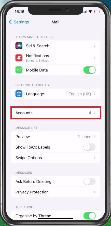Levelezési beállítások > Fiókok > Fiók hozzáadása