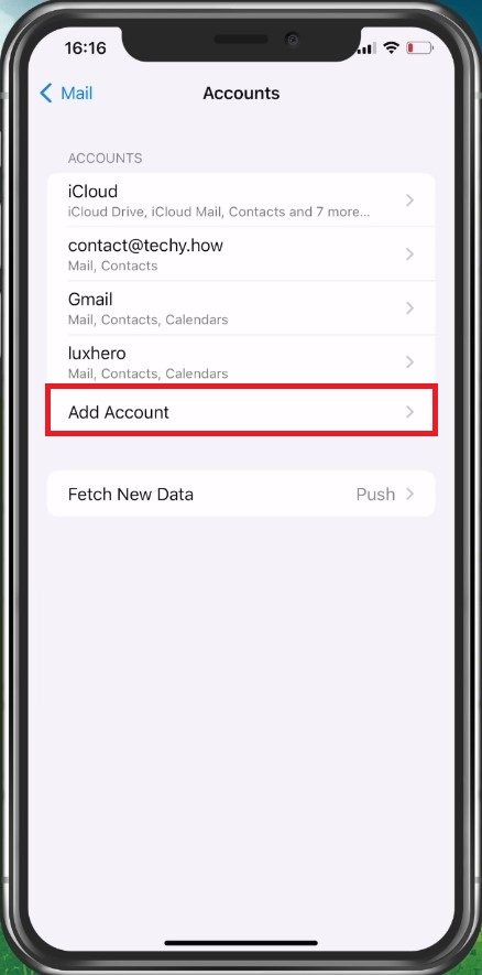 Ha nem biztos abban, hogy a megfelelő fiókot adta hozzá, nyissa meg a beállítások alkalmazását. Görgessen le, és érintse meg a lehetőségetFelad.