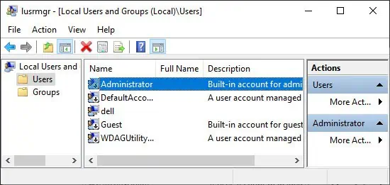 lusrmgr.msc. Ini akan mengarahkan Anda kePengguna Lokal dan Manajer Grup. - Klik Pengguna dari panel kiri.