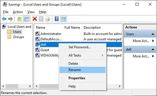- Klik kanan pada akun pengguna dan pilihGanti nama.