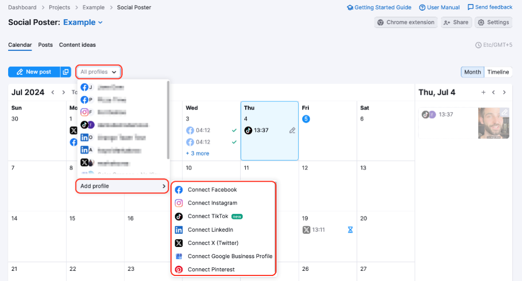 Una caratteristica fondamentale èManifesto sociale, che ti consente di farlopianificare e pubblicare postsu piattaforme come Facebook, Instagram, Twitter (X), LinkedIn, Pinterest e Profilo aziendale di Google. È ottimo per mantenere organizzato il tuo calendario social e pubblicare nei momenti migliori per il coinvolgimento.