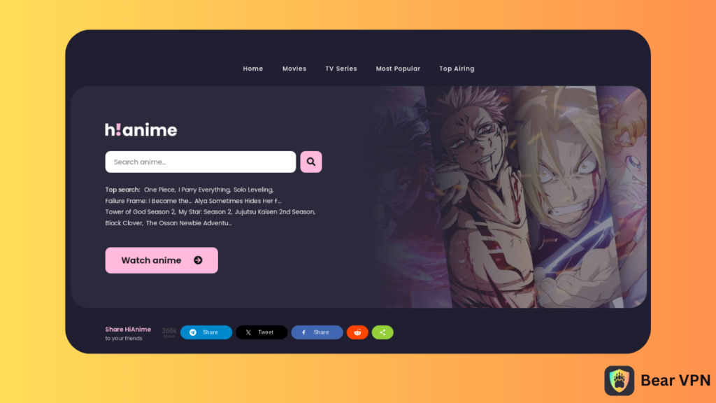 HiAnime è una piattaforma semplice e senza fronzoli che offre una discreta varietà di titoli anime con particolare attenzione all'usabilità e alla velocità.
