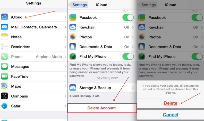 In iOS 7, il modo più semplice per disattivare Trova il mio iPhone senza password è eliminare l'account iCloud dal dispositivo. Questo metodo rimuove efficacemente il tuo ID Apple e tutti i dati associati, incluso Trova il mio iPhone. Sebbene possa sembrare drastico, è un'opzione utile se hai accesso alle impostazioni del dispositivo ma non ricordi la password.