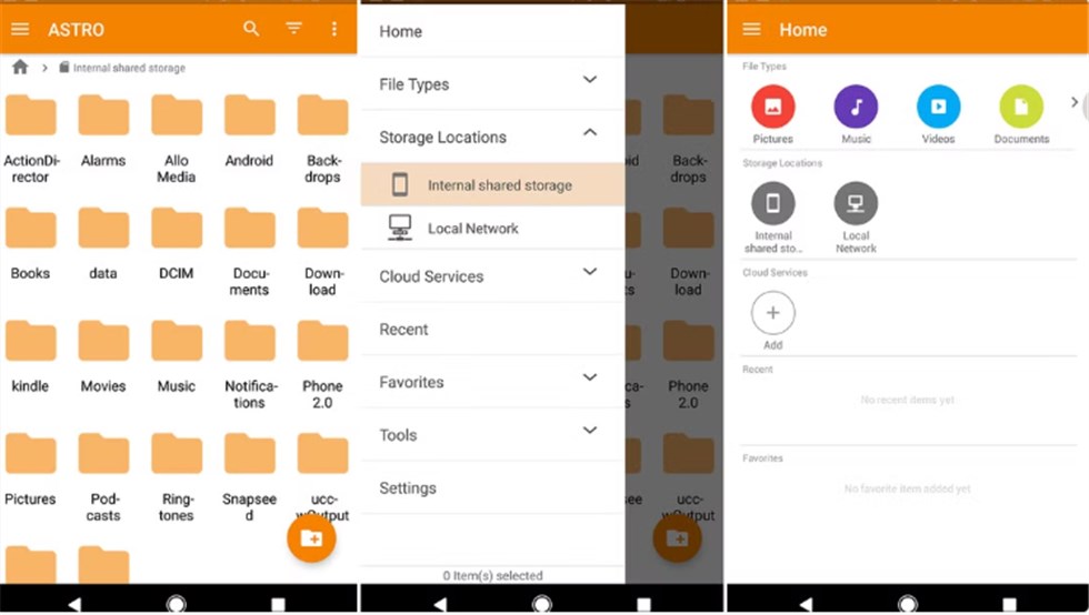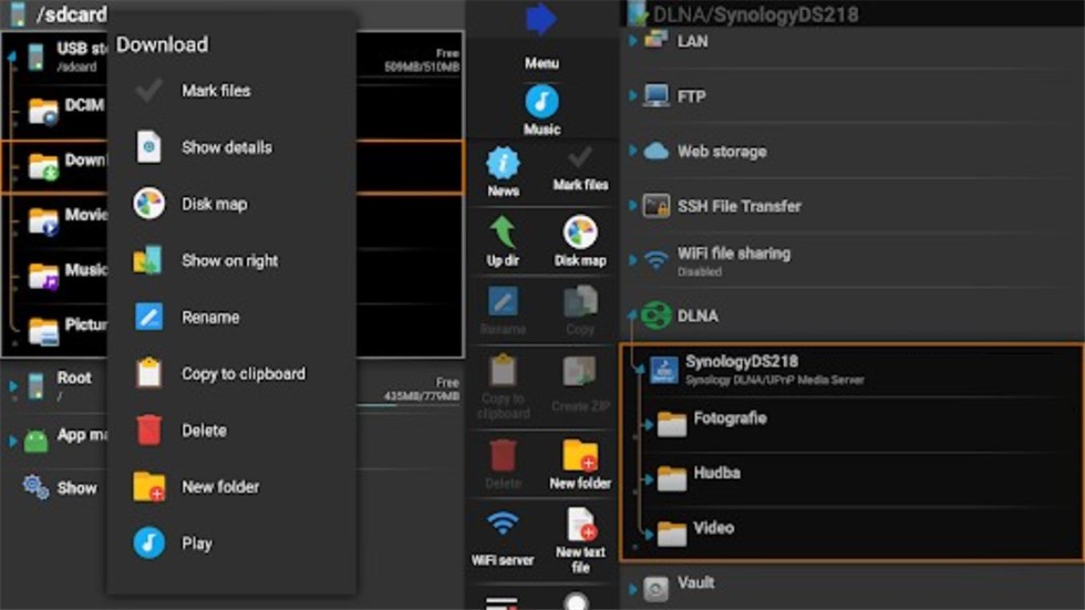 X-plore File Manager è un file manager che consente agli utenti di sfogliare due directory contemporaneamente e presenta una visualizzazione ad albero delle cartelle che può essere espansa. È noto per la sua ampia compatibilità con i protocolli di file di rete, inclusi FTP, SFTP, SMB, WebDAV e archiviazione cloud. Inoltre, l'app fornisce un archivio sicuro per file crittografati, un lettore multimediale di diverso tipo e alcuni strumenti per la gestione delle app.