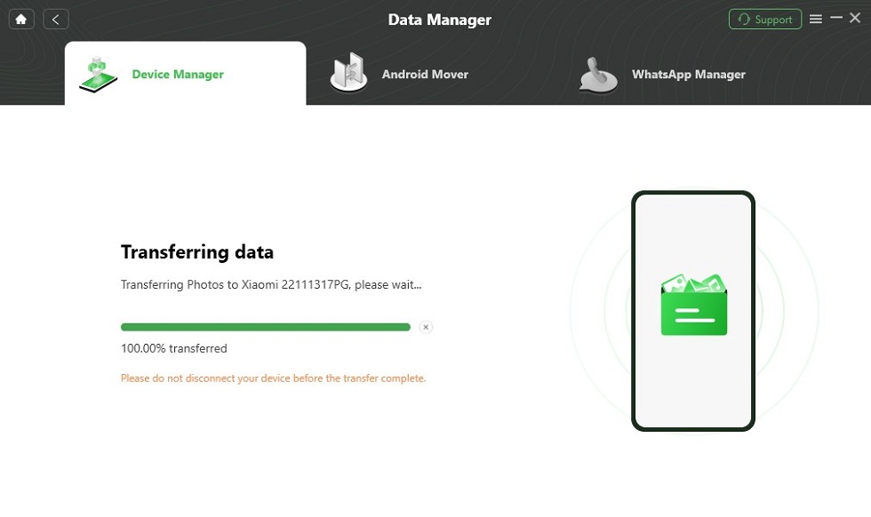 Passaggio 3. Premere il pulsante Start per avviare il trasferimento dei file. Mantieni la calma mentre è in corso.