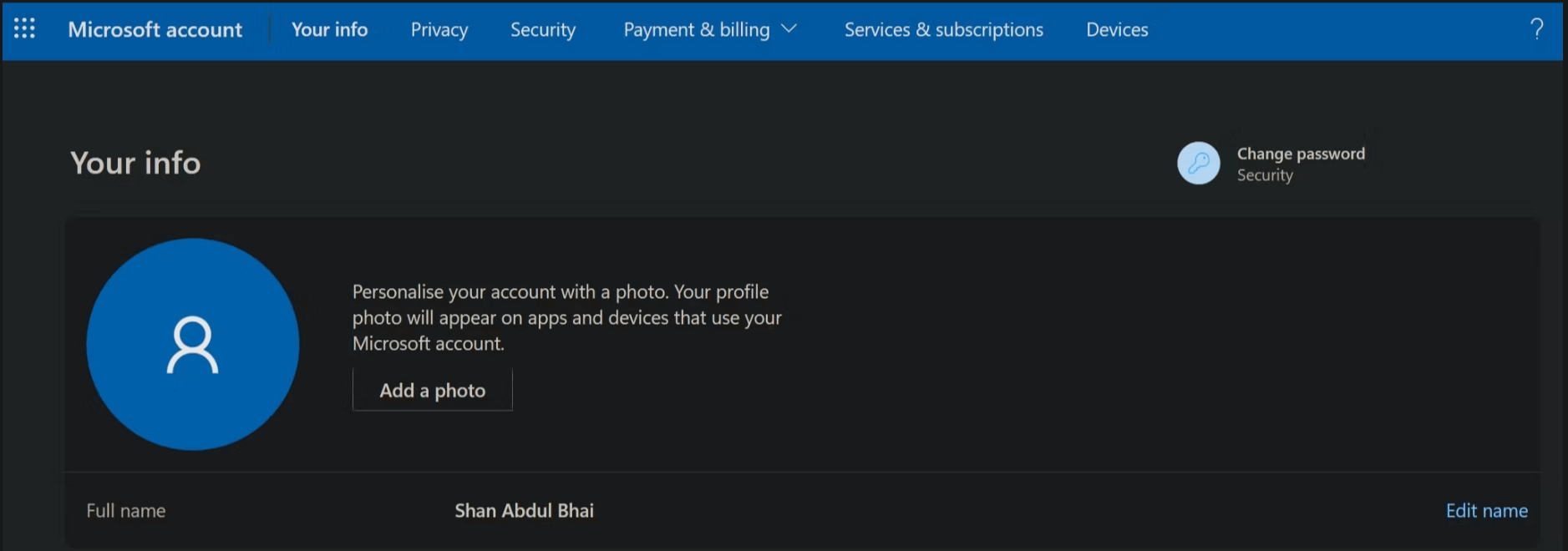 Opzione 6. Modifica il nome dell'account sul sito Web Microsoft