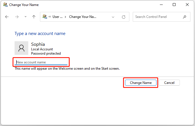 Opzione 1. Modifica il nome dell'account con il Pannello di controllo