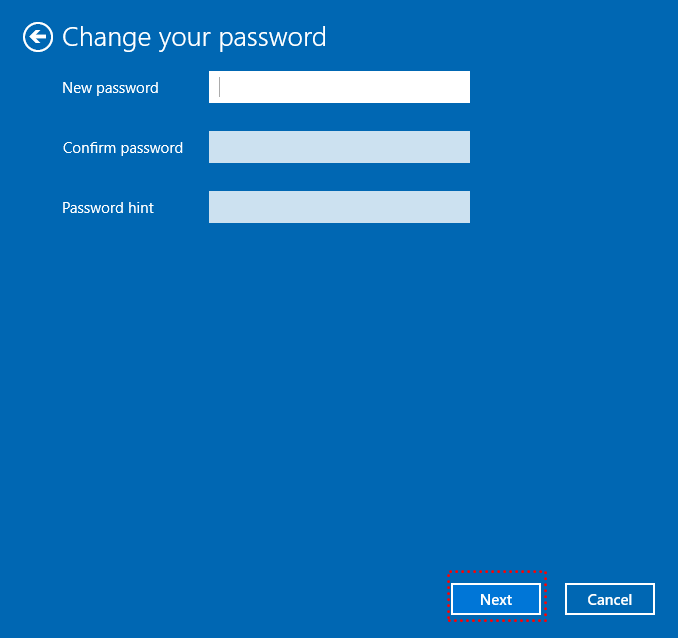 Passaggio 4. Imposta "Nuova password", "Conferma password" e "Suggerimento password". Fare clic su "Avanti".