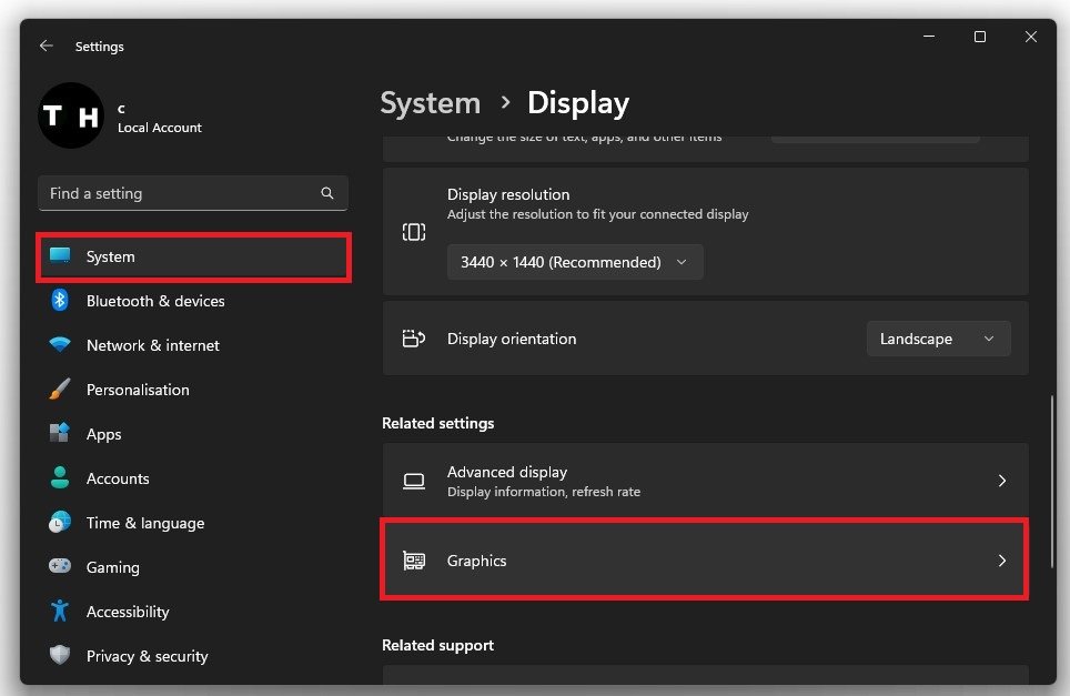 Infine, dovresti impostare le preferenze grafiche per Bluestacks su prestazioni elevate. Nelle impostazioni di Windows, vai a:Sistema>Display>Grafica.