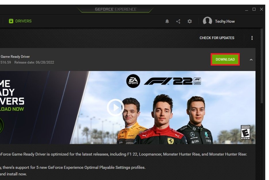 Nella tua applicazione GeForce Experience, vai suDriversezione e procedere con il download e l'installazione del driver più recente. Questo ti aiuterà a eseguire giochi sull'emulatore Bluestacks.