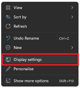 Dovrebbe essere visualizzato qui, ma se non sei sicuro della risoluzione del tuo monitor, fai clic con il pulsante destro del mouse sul desktop e selezionaImpostazioni di visualizzazione.