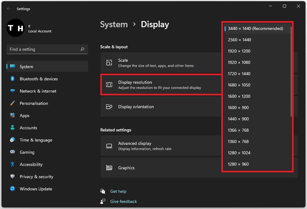 Nel tuoImpostazioni di visualizzazione, scorri verso il basso e sottoScala e layoutsarai in grado di vedere il tuo nativoRisoluzione dello schermo.
