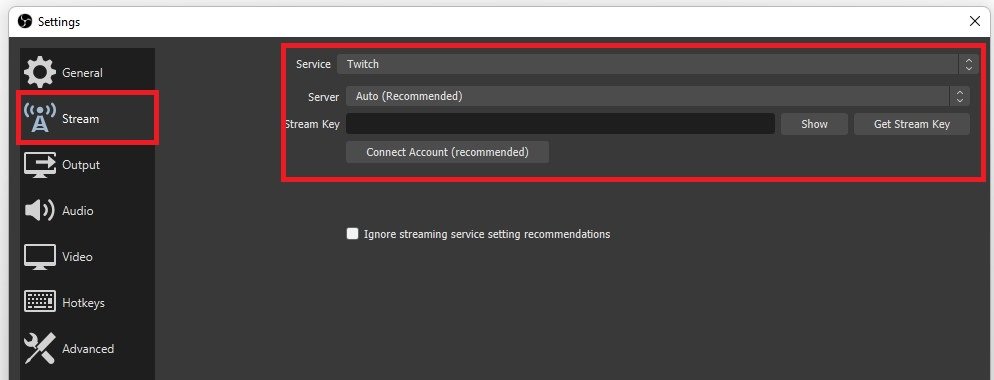 Dopo aver applicato le modifiche, vai al fileFlussosezione delle tue impostazioni. Imposta ilServizioopzione per il servizio di streaming che desideri utilizzare. Puoi incollare la chiave dello streaming dalla dashboard dello streaming di seguito.