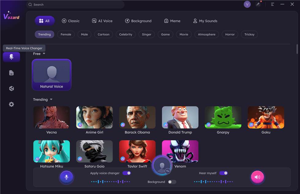 Per quanto riguarda i migliori cambia voce Dalek, Vozard si distingue come la scelta migliore per trasformare la tua voce con precisione e creatività. Vozard è un eccezionale cambia voce che trasforma la tua voce con facilità e creatività. Offre oltre 200 effetti sonori realistici, incluse voci iconiche perfette per giocare, chattare o trasmettere in live streaming. Grazie al cambio e alla registrazione della voce in tempo reale, puoi modificare istantaneamente la tua voce o caricare file audio/video per una facile modulazione della voce. Vozard fornisce molteplici metodi di input audio, offrendo flessibilità e controllo. Puoi aggiungere divertimento al tuo live streaming con effetti sonori unici o sorprendere i compagni di squadra con travestimenti vocali inaspettati. Gli effetti sonori di sottofondo e i meme sonori di Vozard garantiscono un intrattenimento senza fine.