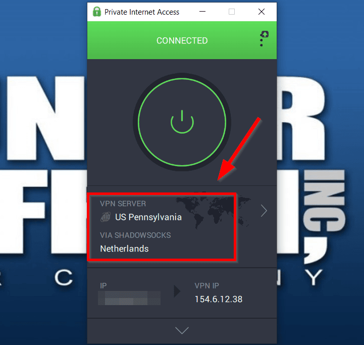 - Connettiti a un server gratuito in una regione in cui è disponibile PIA. Raccomando il server USA.