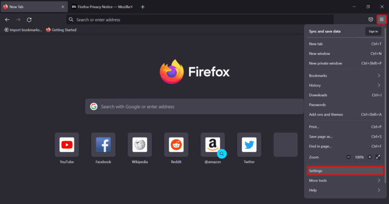 - Apri Firefox e fai clic sulle tre linee nell'angolo in alto a destra dello schermo e scegliImpostazioni.