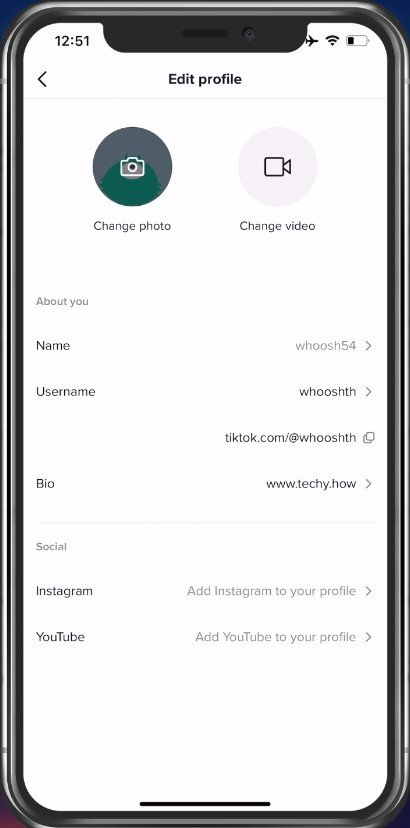 Modifica il profilo TikTok