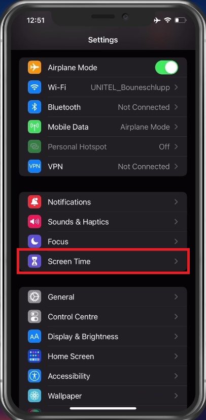 Sui dispositivi iOS, apri l'applicazione delle impostazioni. Da qui, toccaTempo sullo schermo.